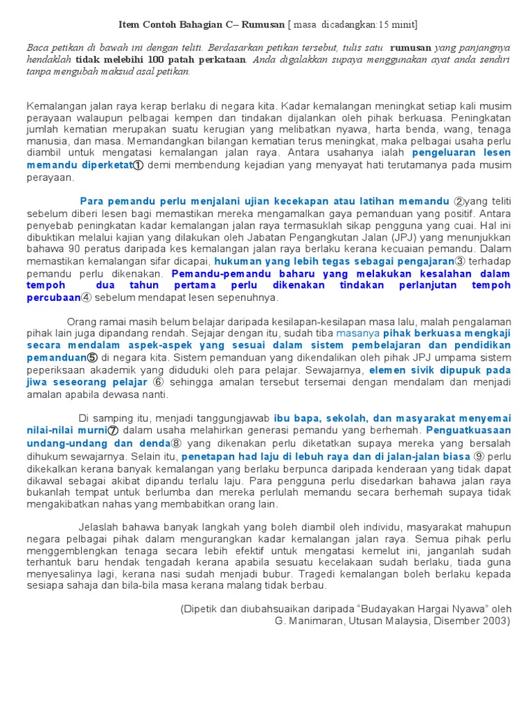 Panjangnya rumusan anda hendaklah tidak melebihi 120 patah perkataan. Contoh Rumusan Lengkap. Contoh soalan rumusan karangan.
